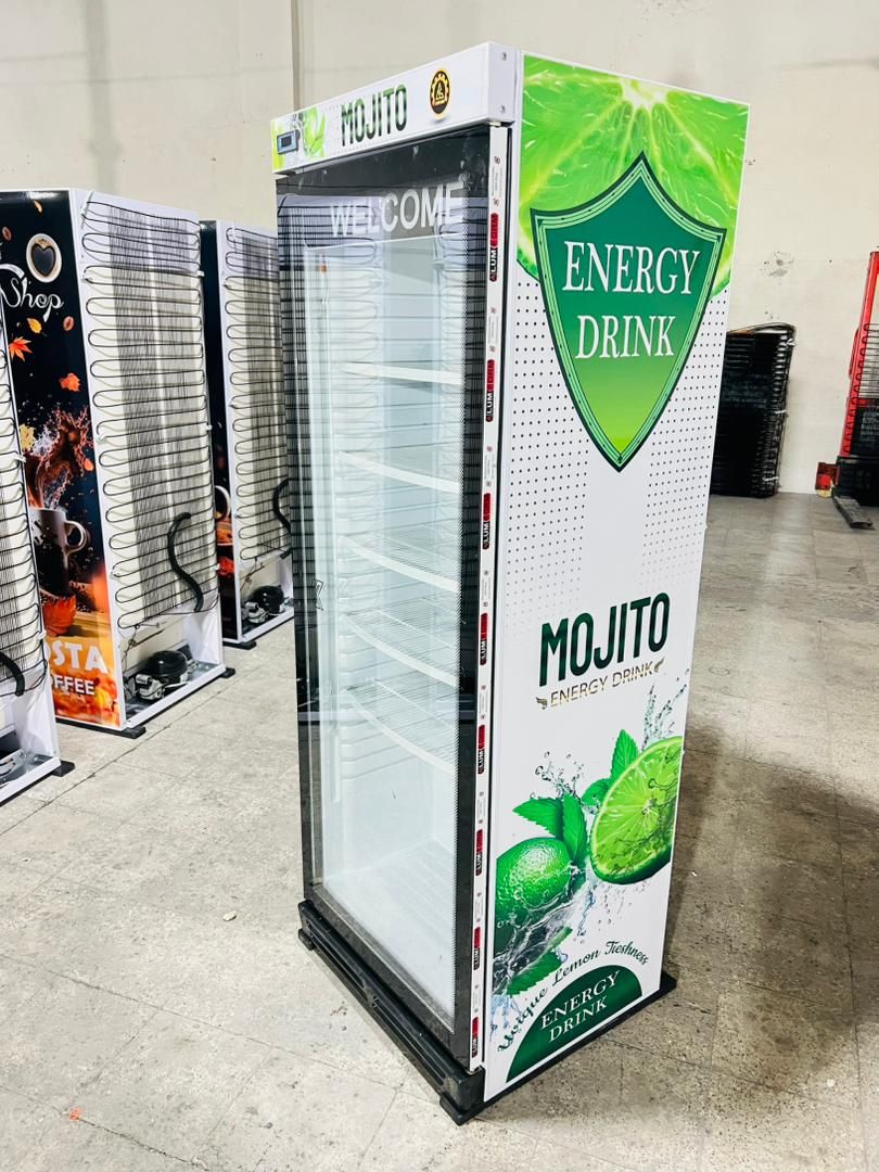 یخچال ویترینی ایستاده عرض 70 سانت تک درب طرح انرژی زا قوطی MTNDEW