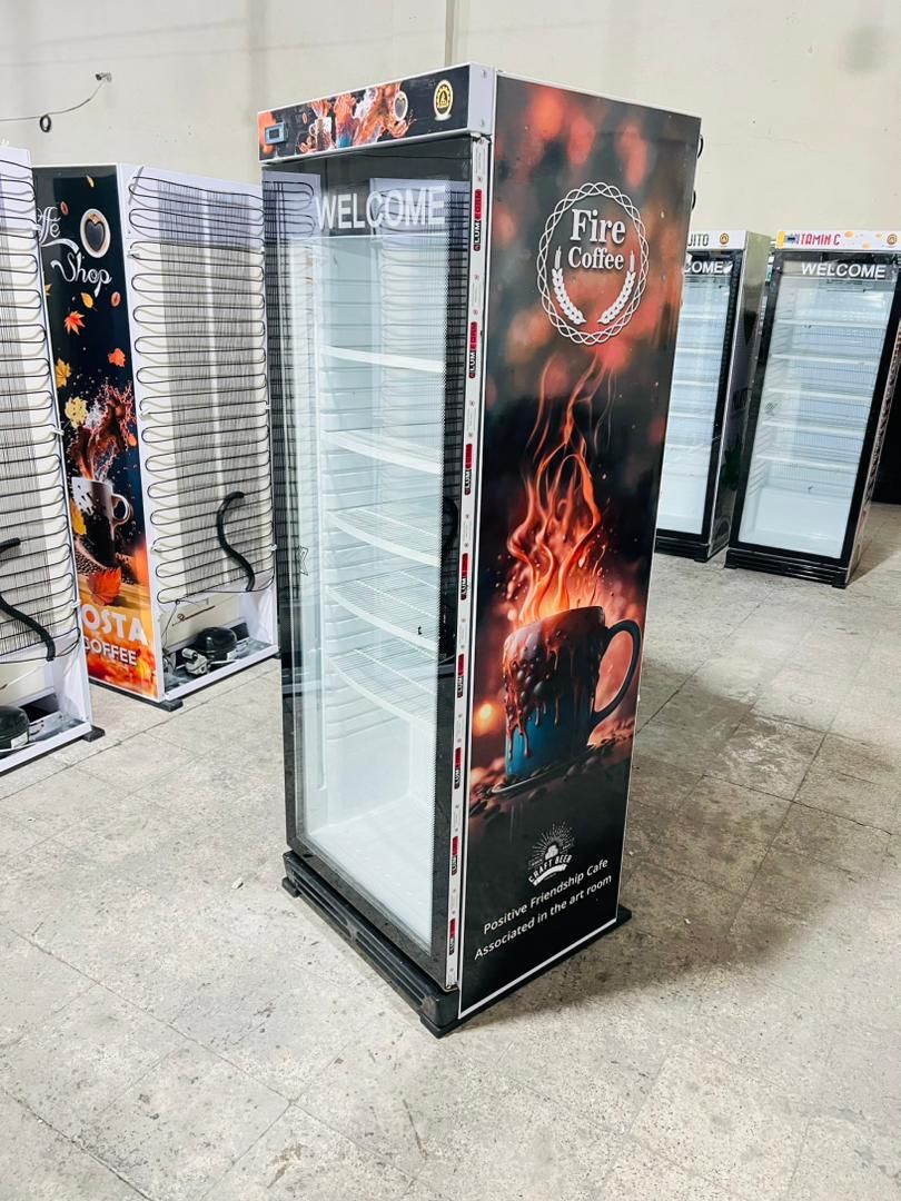 یخچال ویترینی ایستاده عرض 70 سانت طرح کافه FIRE COFFEE تاج و ارتفاع کوتاه