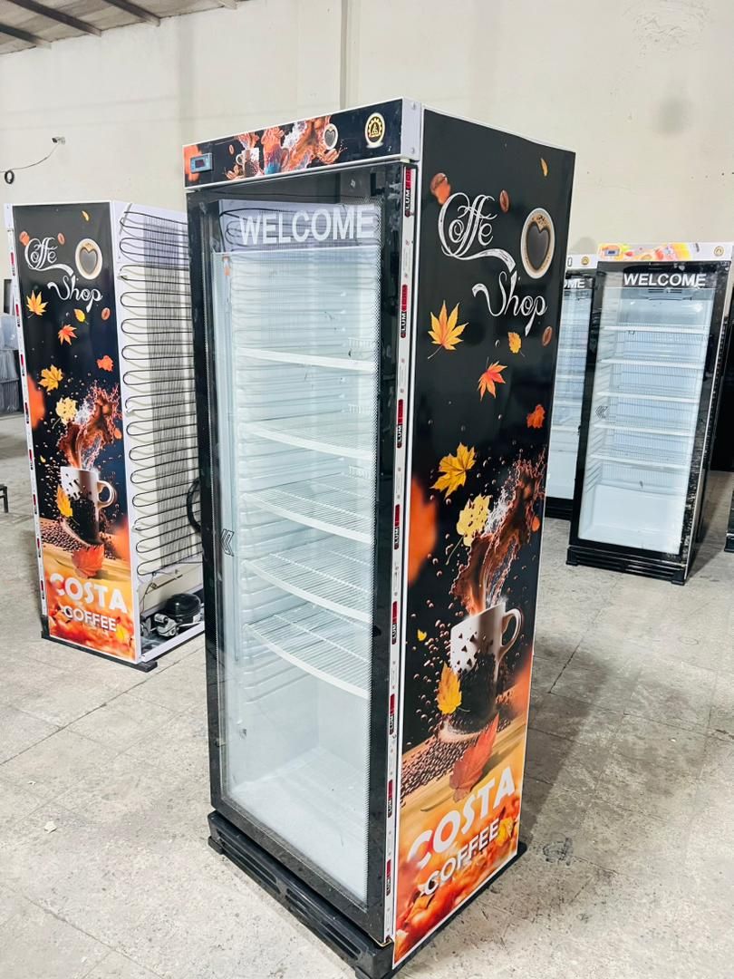یخچال ویترینی ایستاده عرض 70 سانت طرح کافه costa coffee تاج و ارتفاع کوتاه