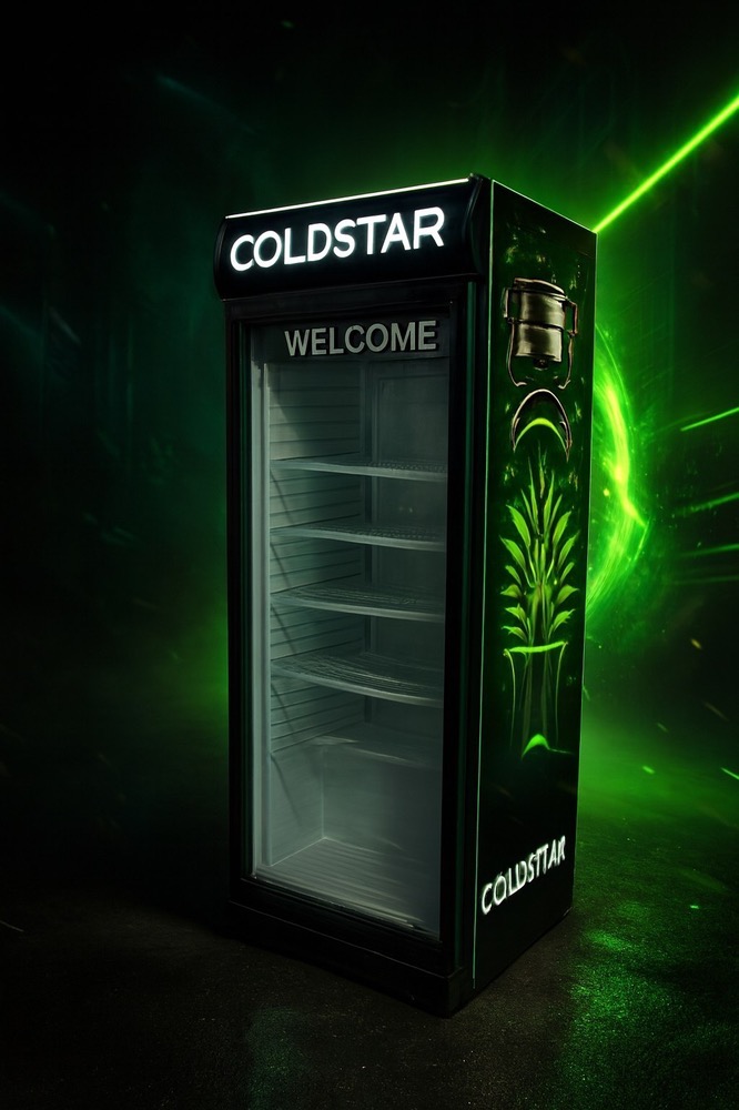 یخچال ویترینی ایستاده عرض 70 سانت تک درب طرح کافه کلداستار coldstar coffee