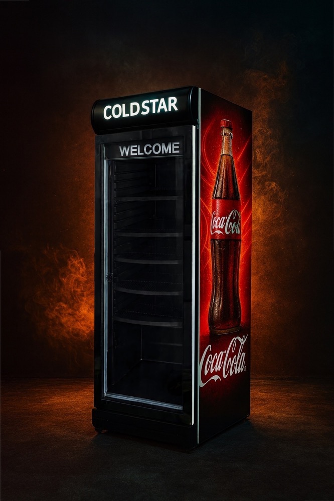 یخچال ویترینی ایستاده عرض 70 سانت تک درب طرح کوکاکولا شیشه ای cocacola